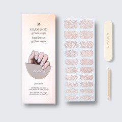 Our GLAM & GO gel nail wraps ensure that no matter how complex your chosen nail design, the application process remains incredibly simple. Our GLAM & GO gel nail wraps require no glue, base coat, or top coat—just peel them off the packaging, apply them to your nail, trim to size, cure twice, and voilà!