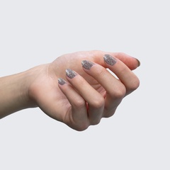 Clear coat with rose gold glitter & silver sparkles. Translucent.